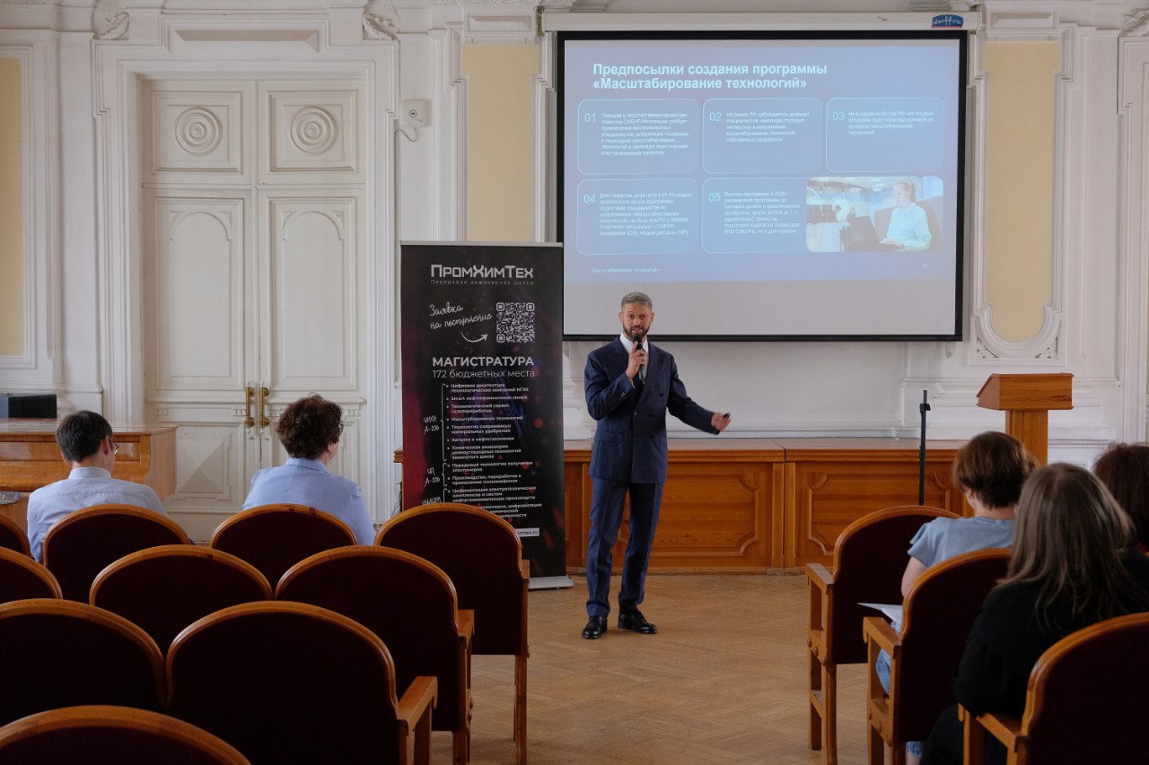 ПИШ «Промхимтех» КНИТУ и компания СИБУР презентовали новую совместную магистерскую программу «Масштабирование технологий». На мероприятии студенты бакалавриата узнали подробности о преимуществах программы, пообщались с руководителями ООО «СИБУР-Инновации», услышали реальные карьерные кейсы сотрудников, задали интересующие вопросы и получили консультации по поступлению.